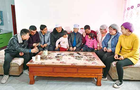 ▲馬幫林(左四)在銀川市潤豐村家中與家人合影(2020年12月31日攝)。新華社記者王鵬攝