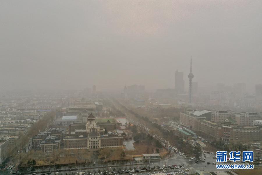 這是3月15日拍攝的沙塵籠罩的吉林省長春市(無人機照片)。當日,我國北方多地出現(xiàn)沙塵天氣。新華社記者 張楠 攝