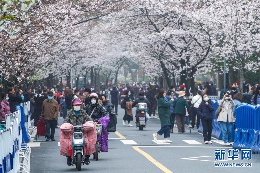 近日,南京街頭盛開(kāi)的櫻花燦若云霞,吸引眾多市民游客外出賞花游玩,享受春日美景。