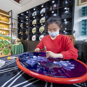 5月4日,山西省級(jí)非遺傳統(tǒng)刻瓷項(xiàng)目傳承人苗振潔在太原古縣城內(nèi)刻瓷。