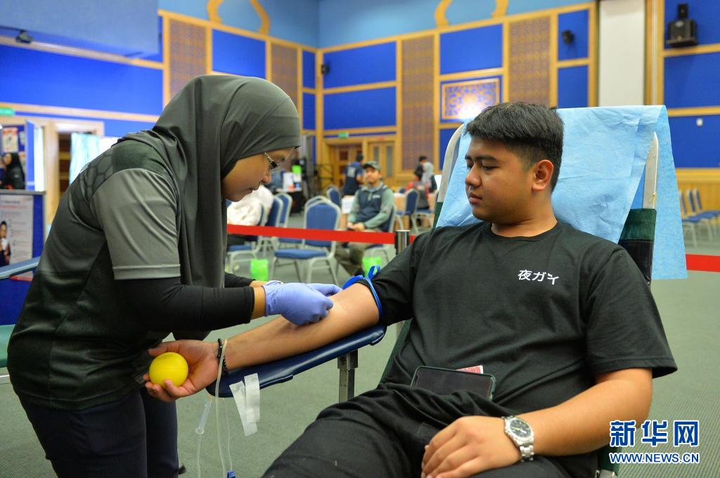 6月14日,一名男子在文萊斯里巴加灣市參與無(wú)償獻(xiàn)血活動(dòng)。