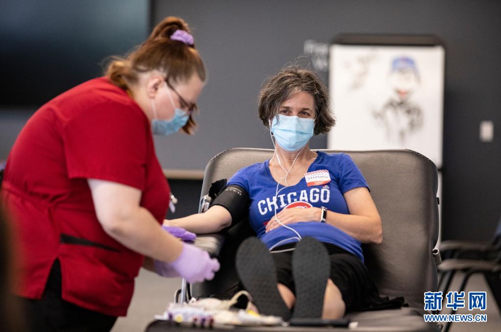 這是6月14日在美國芝加哥的大芝加哥地區(qū)紅十字會一獻血站內(nèi)拍攝的獻血志愿者。新華社發(fā)(喬爾·萊納攝)