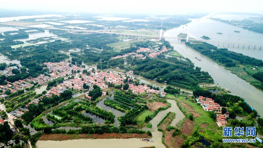 這是郵遞員王少朋服務(wù)的微山縣南陽鎮(zhèn)一角,南陽鎮(zhèn)四面環(huán)水,交通不便(6月20日攝,無人機(jī)照片)。