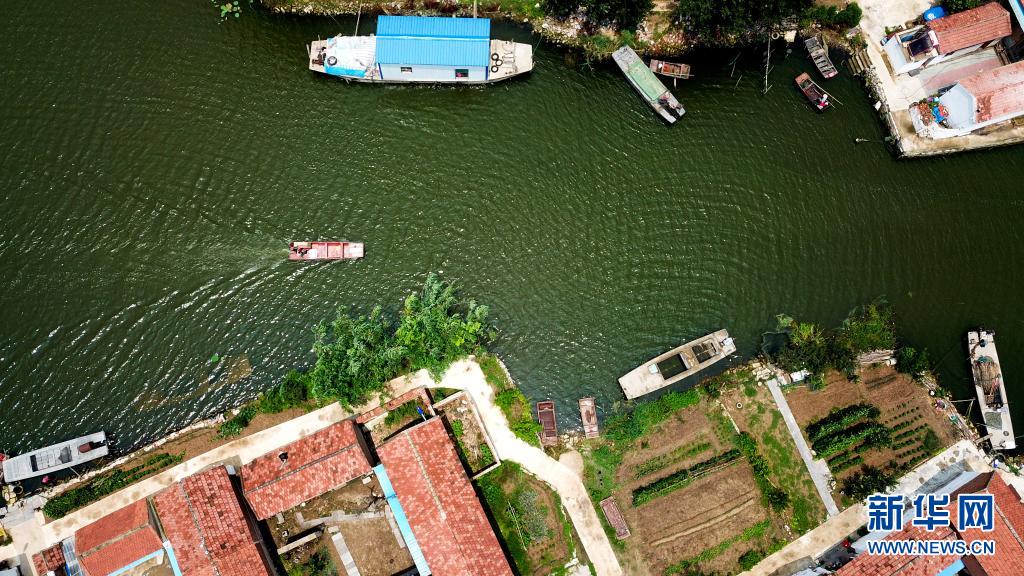 6月20日,在微山縣南陽鎮(zhèn),郵遞員王少朋駕駛郵船為龔莊村村民投遞郵件。