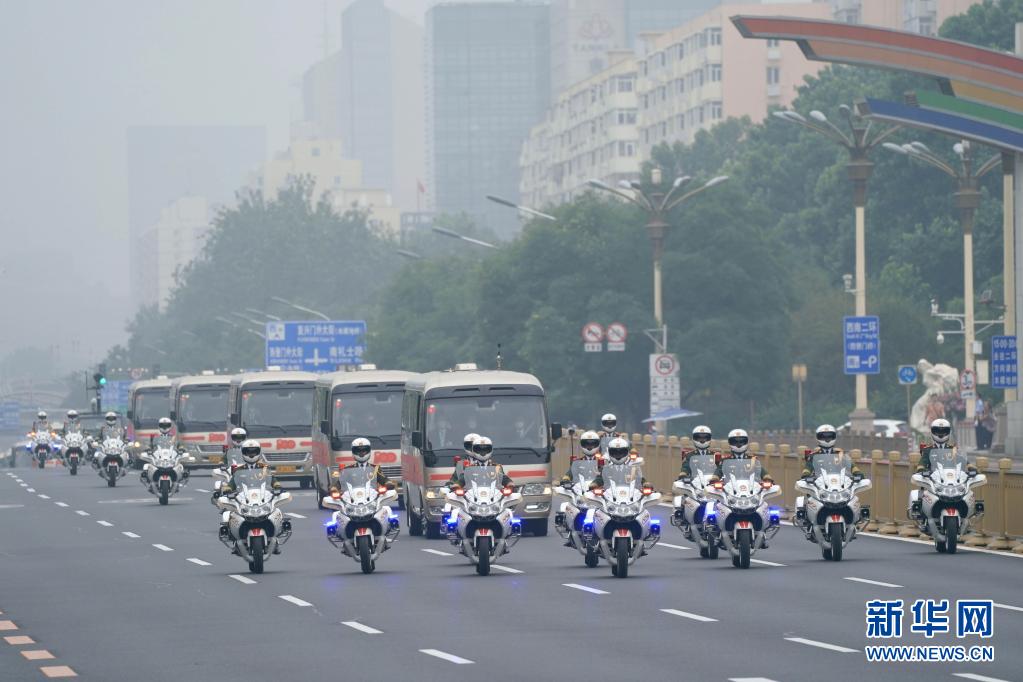這是“七一勛章”獲得者集體乘坐禮賓車從住地出發(fā),由國賓護衛(wèi)隊護衛(wèi)前往人民大會堂。