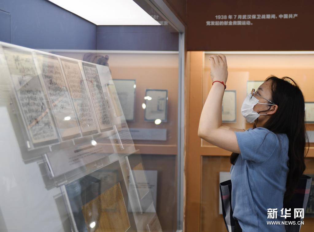 7月7日,觀眾在中國人民抗日戰(zhàn)爭紀念館參觀“中流砥柱——中國共產黨抗戰(zhàn)文物專題展”。新華社記者 張晨霖 攝