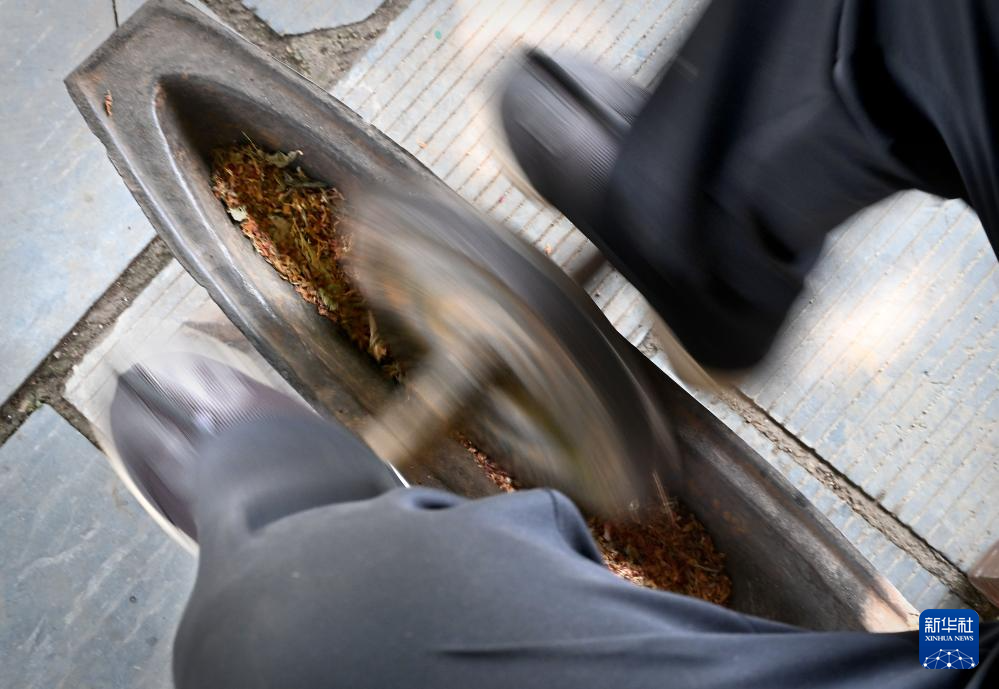 张书芳在研磨香料(7月3日摄)。