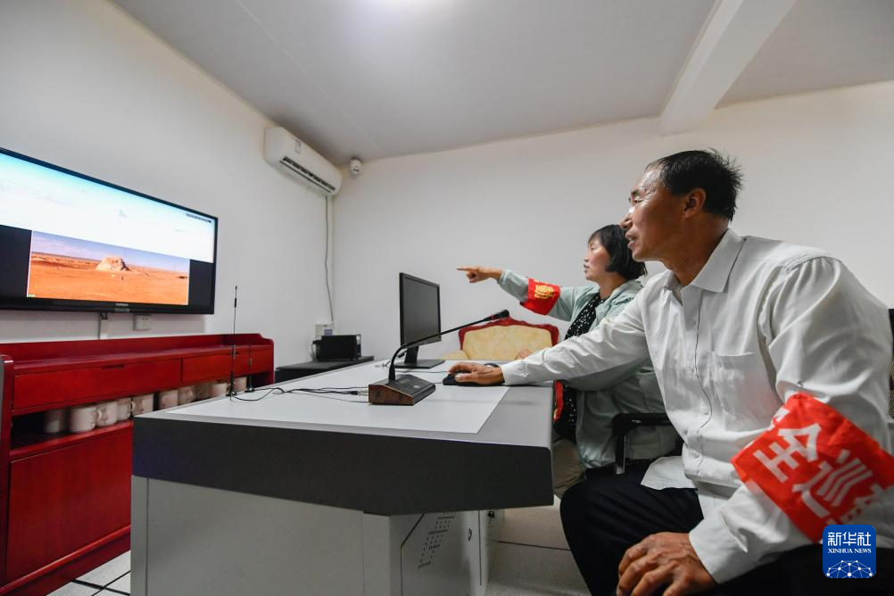 7月16日,张吉全和妻子闻春瑜通过监控巡查汉长城遗址。