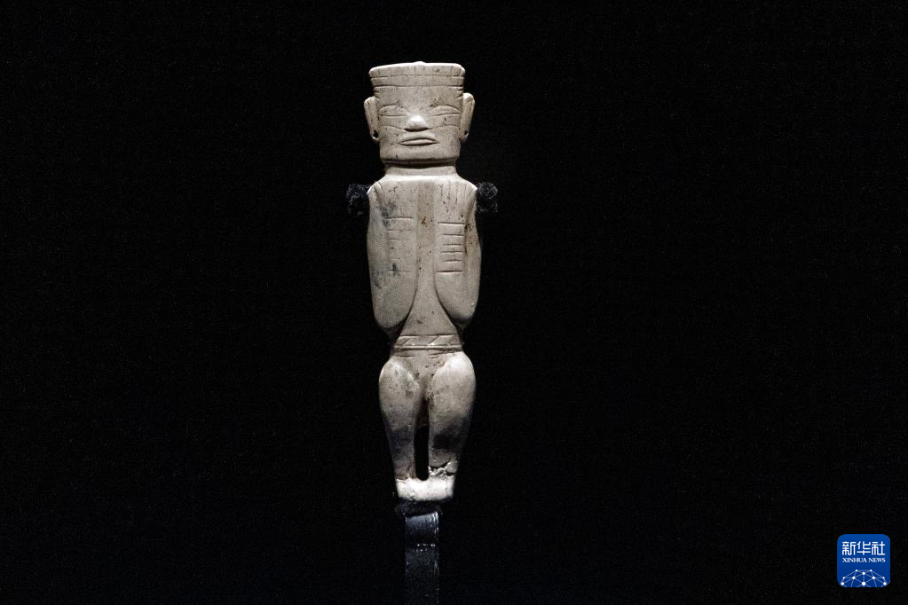 这是7月28日在重庆中国三峡博物馆举行的“玉出大江——长江流域史前玉器特展”上拍摄的凌家滩文化玉人。
