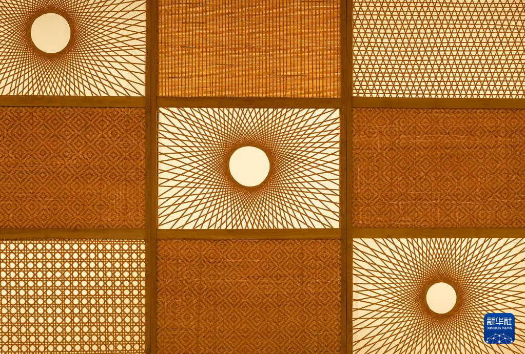 9月15日拍摄的贵州省赤水市大同镇极竹堂非遗竹编产学研基地的竹编产品展示。