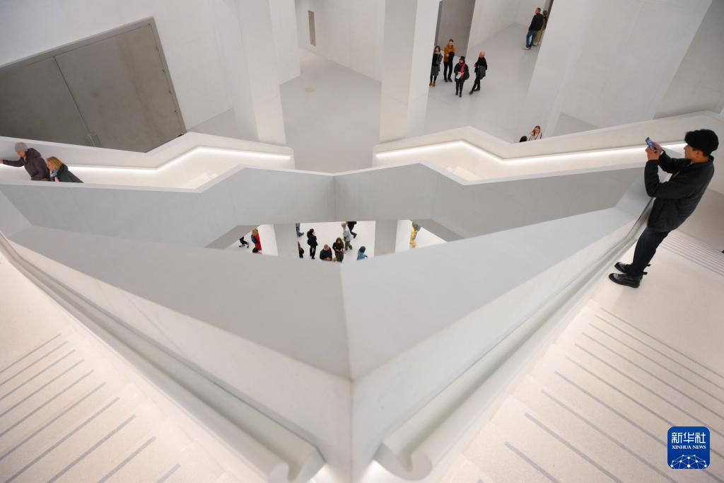 10月25日,人们在波兰华沙现代艺术博物馆新馆中参观。