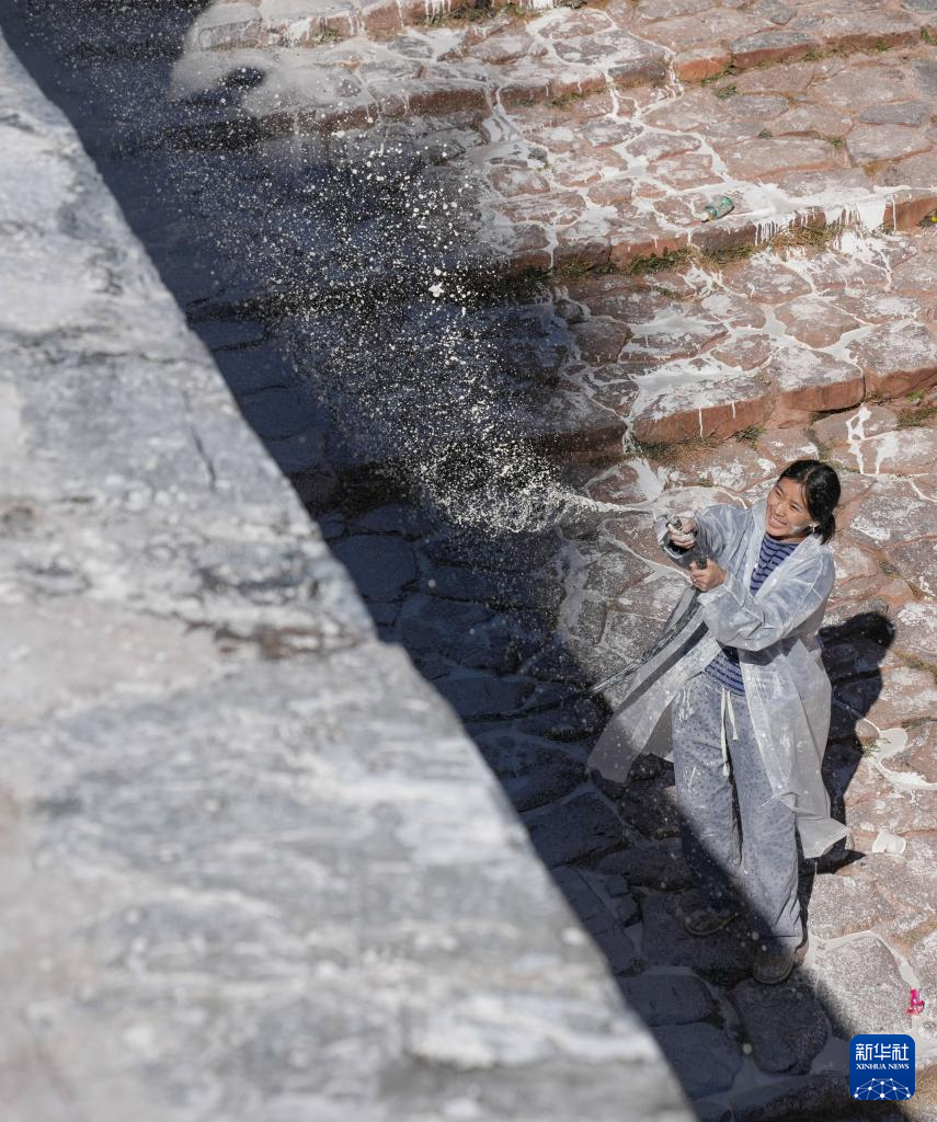 近期,西藏布达拉宫开始进行一年一度的外墙粉刷工作。布达拉宫管理处的工作人员和志愿者一起,将牛奶、蜂蜜、白糖、红糖、藏红花等粉刷原料与各色石灰混合后,调出白色、红色、黄色的专用涂料,再喷洒到布达拉宫外墙上,因此布达拉宫也被人们称为“甜蜜的宫殿”。独特配方的涂料更具黏性而且不易脱落,从而更好地保护古建墙体。