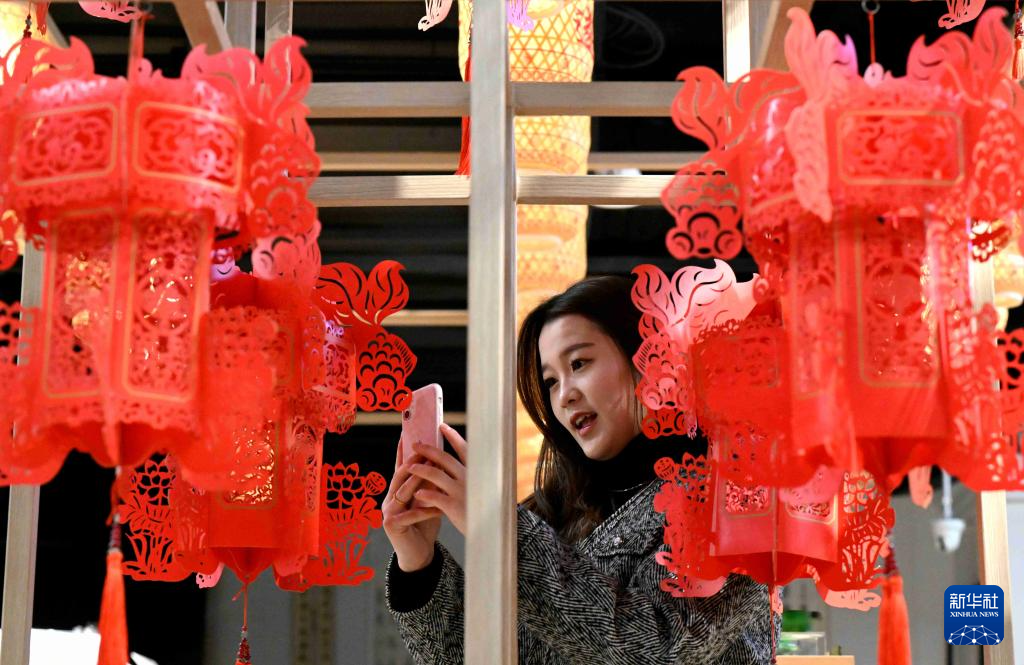 12月11日,游客在河北博物院文化创意空间参观拍照。