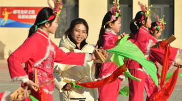 新年将至,河北省遵化市苏家洼镇的民间艺人开展民俗表演进校园活动,他们来到当地的下石河中学,为学生表演舞狮、舞龙、赶驴、跑旱船等传统民俗节庆节目,为学生讲解民俗表演技巧,学生们在观看、了解、体验中感受传统文化的魅力。