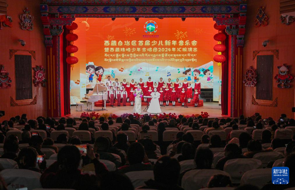 当日,西藏自治区首届少儿新年音乐会暨西藏珠峰少年合唱团2024年汇报演出在西藏自治区群艺馆举行。来自西藏珠峰少年合唱团、日喀则珠峰少年合唱团、西藏自治区群艺馆藏戏常态班、堆龙青少年活动中心的少年为现场和网络观众带来精彩的表演。
