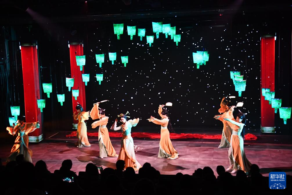 4月12日,演员在舞台剧《寻长沙》中演奏青铜铙。