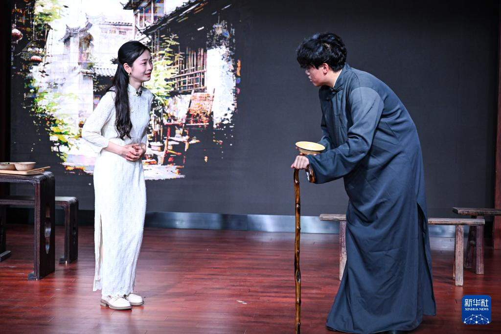 4月16日,在重庆市沙坪坝区文化馆,演员表演话剧《青山见》。