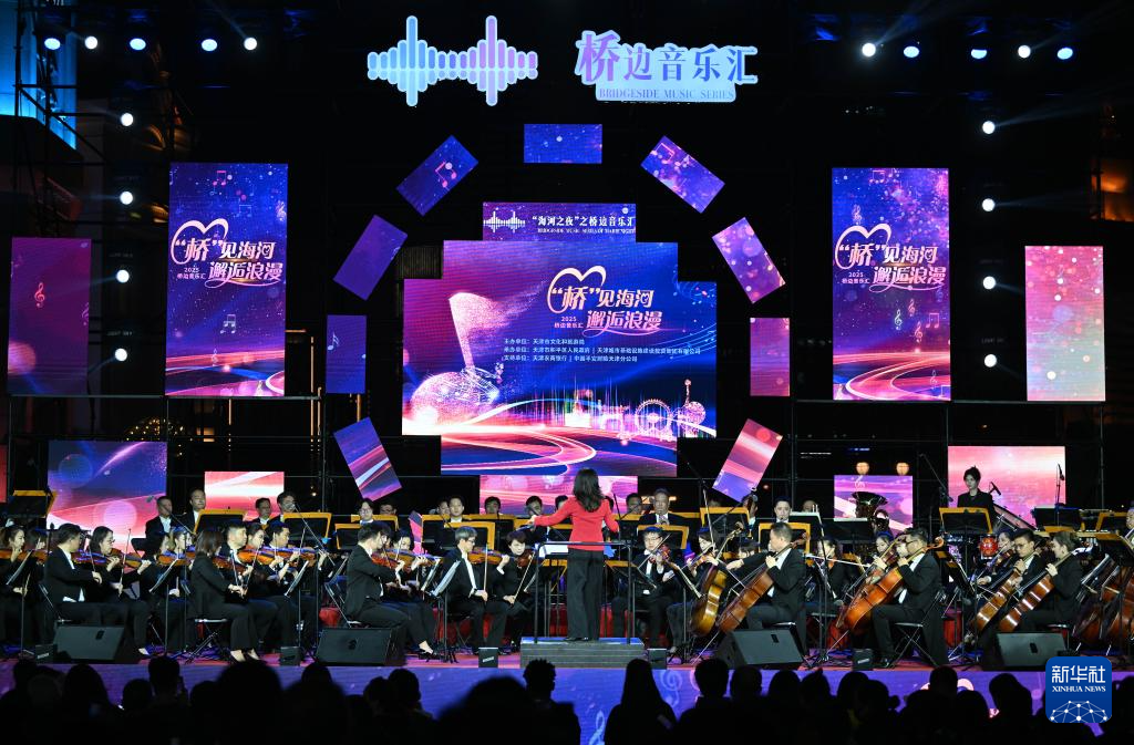 4月19日晚,“‘桥’见海河,邂逅浪漫”2025桥边音乐汇首场演出在天津津湾广场亲水平台启幕。
