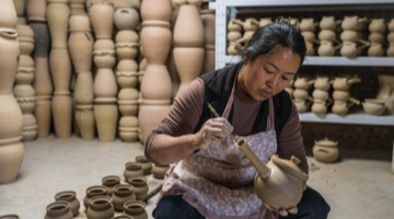 11月10日,演员晁花兰(前)在北京繁星戏剧村表演《长相念》。