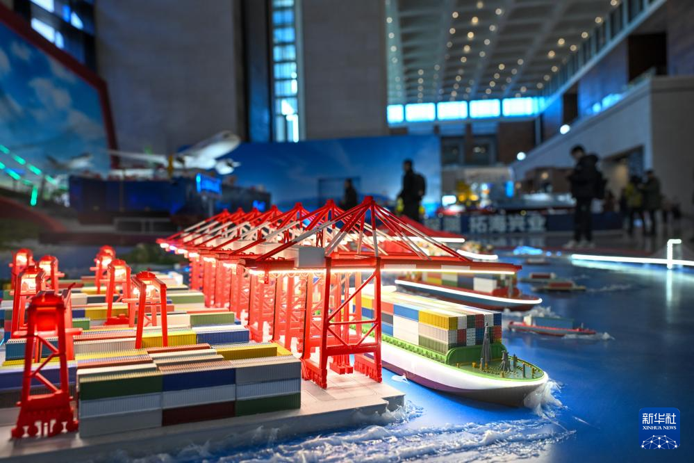 这是在“筑基强国路——中国制造‘十四五’成就展”上展出的上海洋山港模型(12月29日摄)。