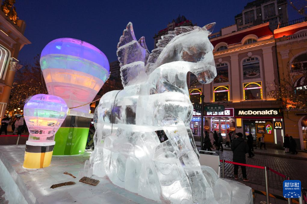 哈尔滨:冰雕景观为百年中央大街添彩-新华网