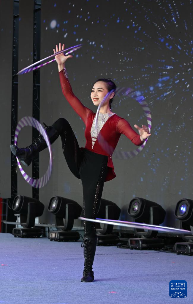 2月22日,福建省杂技团演员在“周末戏相逢”福建优质文化文艺资源直达基层公益性演出活动上表演杂技。