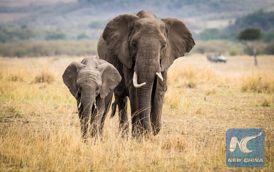 Two elephants walk at the Maasai Mara National Reserve, Kenya, Aug. 28, 2017. (Xinhua/Lyu Shuai)