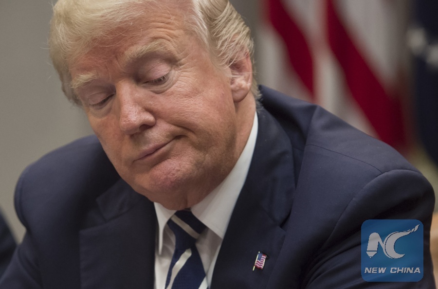 File photo taken on Jan. 11, 2018 shows U.S. President Donald Trump during a meeting on prison reform in the Roosevelt Room of the White House in Washington, D.C. (Xinhua/AFP)
