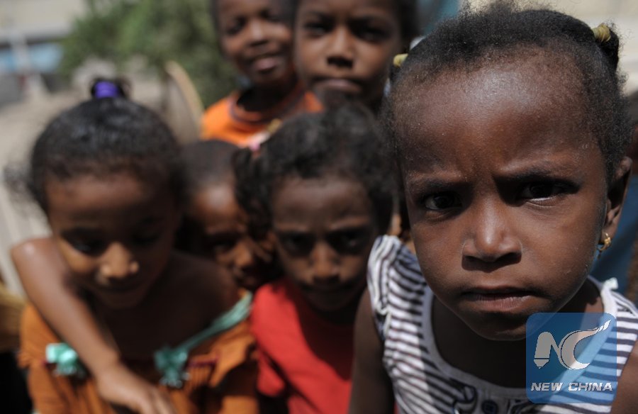 Several refugee children are seen at a refugee camp in Aden Province, Yemen, June 16, 2012. (Xinhua/Mohammed Mohammed)