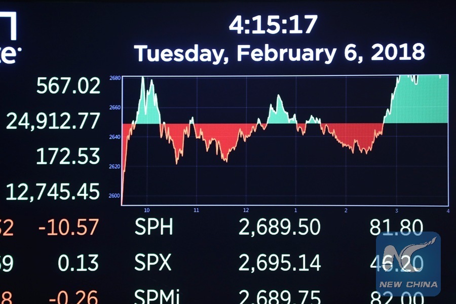 NEW YORK, Feb. 6 (Xinhua) -- U.S. stocks closed higher in volatile trading on Tuesday, as major indices tried to recover from the biggest one-day declines for the Dow and the S&P 500 in more than six years.