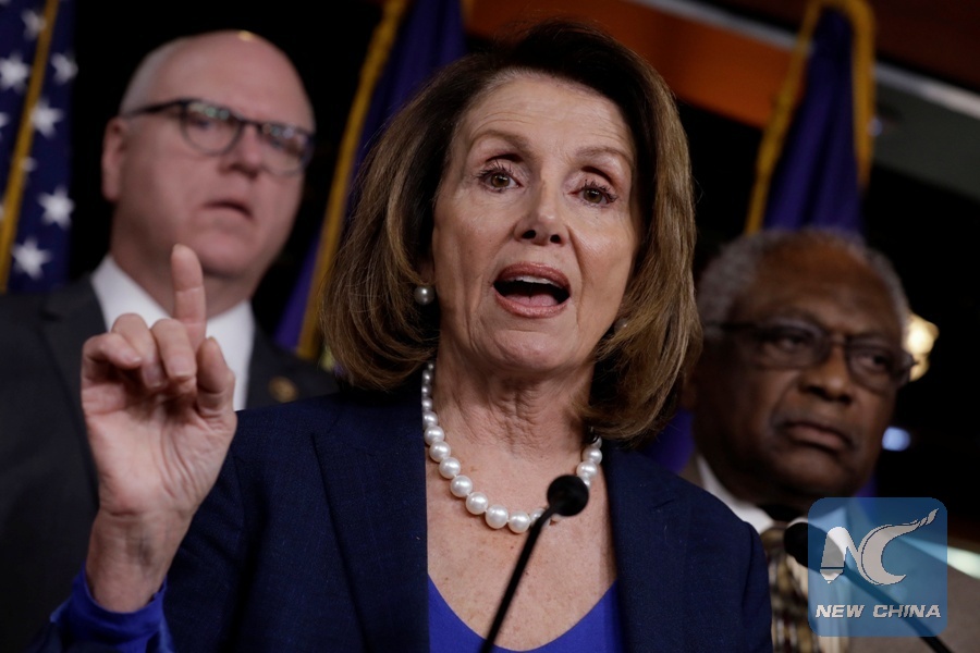 WASHINGTON, Feb. 7 (Xinhua) -- U.S. House Minority Leader Nancy Pelosi, a 77-year-old Democrat, set a House record Wednesday with an 8-hour consecutive speech on immigration.