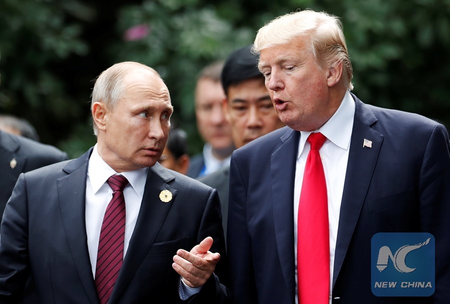 WASHINGTON, Feb. 12 (Xinhua) -- U.S. President Donald Trump and his Russian counterpart Vladimir Putin spoke over phone on Monday to discuss the Russian plane crash as well as issues concerning the Middle East peace process and the Democratic People's Republic of Korea (DPRK).