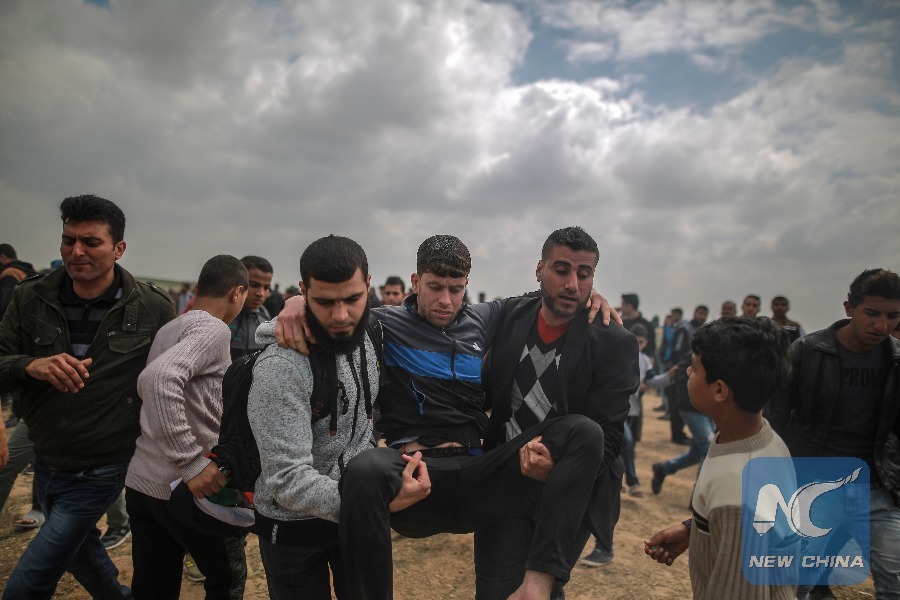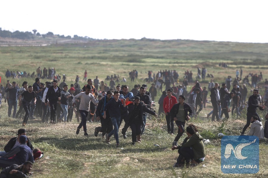 BEIJING, March 31 (Xinhua) -- Gaza witnessed its bloodiest day since the 2014 Israel-Palestine conflict with at least 17 Palestinians killed and over 1,000 wounded as a march by thousands of Palestinians to Gaza's border with Israel turned violent Friday.