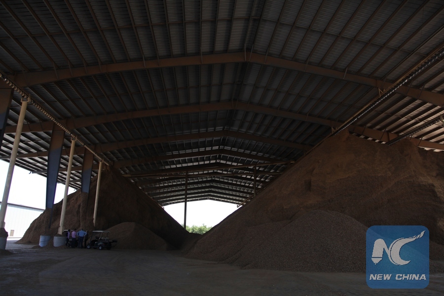 Photo taken on April 25, 2018 shows the processing plant of Travaille and Phippen, Inc., an almond growing and processing enterprise, in Modesto, the United States. (Xinhua/Gao Shan)