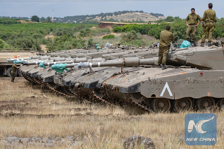 Israeli tanks are seen in the Israeli-occupied Golan Heights, on May 9, 2018. (Xinhua/JINI/Ayal Margolin)