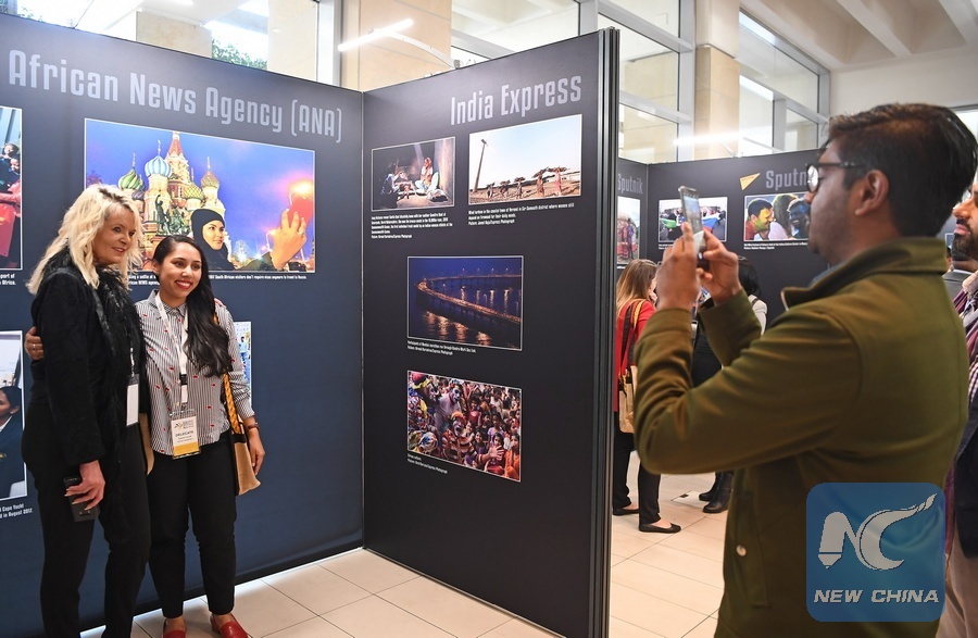 The exhibition, displaying 98 pictures selected by media groups from Brazil, Russia, India, China and South Africa, has been jointly organized by China's Xinhua News Agency and South Africa's Independent Media.
