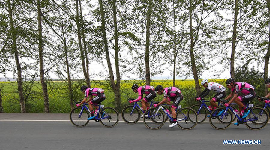 Cyclists compete in the eighth stage of the Tour of Qinghai Lake in northwest China's Gansu Province on July 29, 2018. (Xinhuanet Photo by Jia Haiyuan)