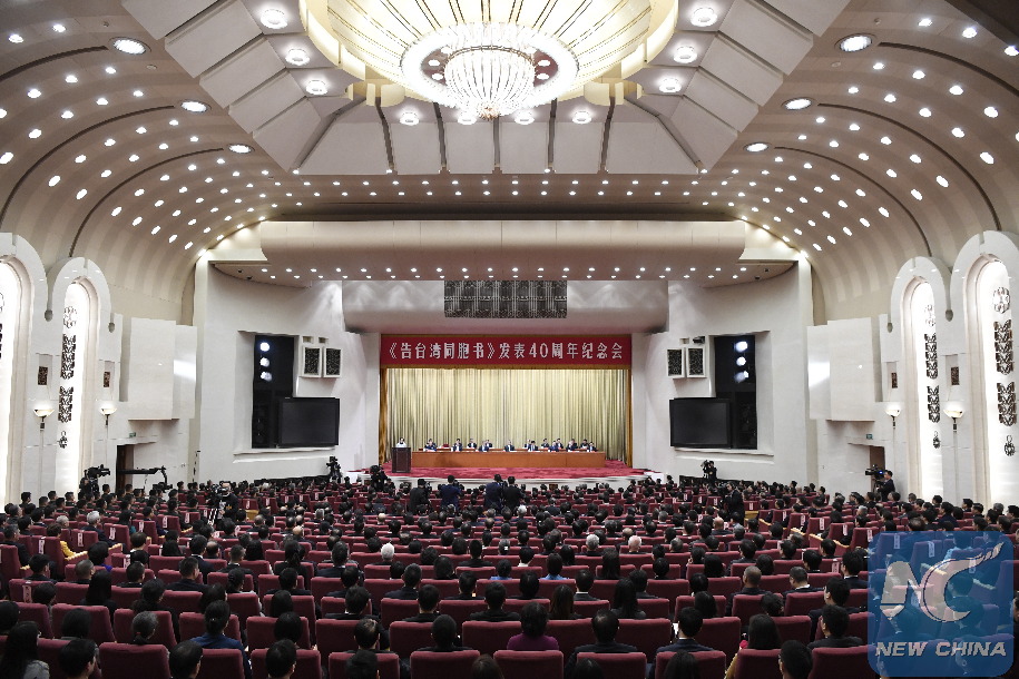 A gathering to commemorate the 40th anniversary of issuing Message to Compatriots in Taiwan is held at the Great Hall of the People in Beijing, capital of China, Jan. 2, 2019. (Xinhua/Shen Hong) XINHUA PHOTOS OF THE DAY