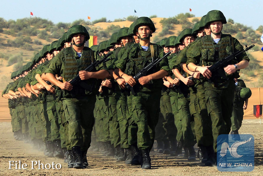 Russian military take part in the Indo-Russian joint military exercise "INDRA 2013", to improve capabilities for carrying out anti-terrorist operations at Mahajan field firing range near India-Pakistan border in Thar desert of Rajasthan on Oct. 20, 2013. (Xinhua)