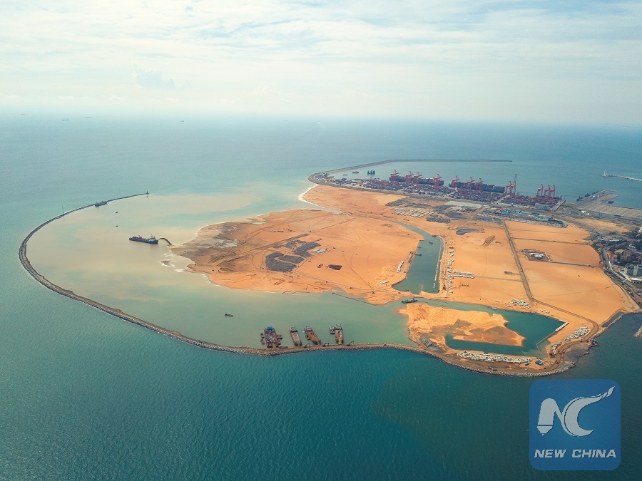 Photo taken on April 19, 2018 shows the construction site of Colombo Port City in Colombo, Sri Lanka. (Xinhua/CHEC)