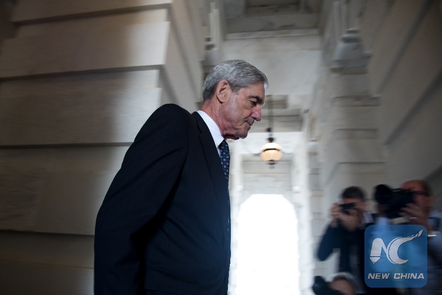 File Photo: Former FBI Director Robert Mueller, the special counsel probing Russian interference in the 2016 U.S. election, leaves the Capitol building after meeting with the Senate Judiciary Committee on Capitol Hill in Washington D.C., the United States, on June 21, 2017. (Xinhua/Ting Shen)