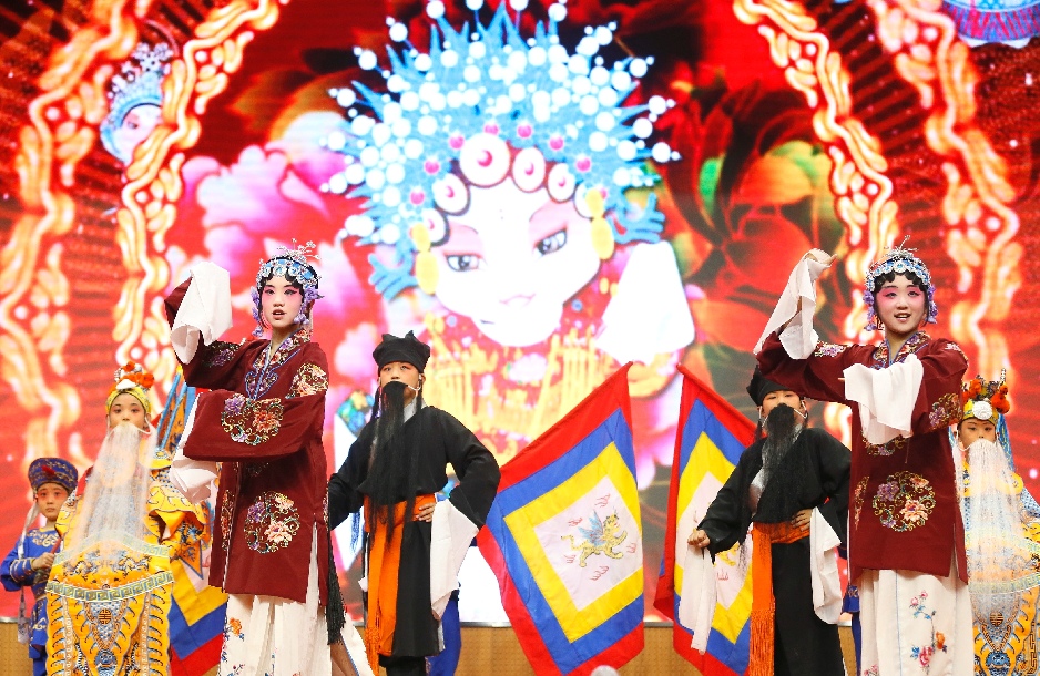 Students perform Peking Opera during a campus Peking Opera festival in Tongji Experimental School in Qingdao, east China's Shandong Province, May 30, 2019. (Xinhua/Liang Xiaopeng)