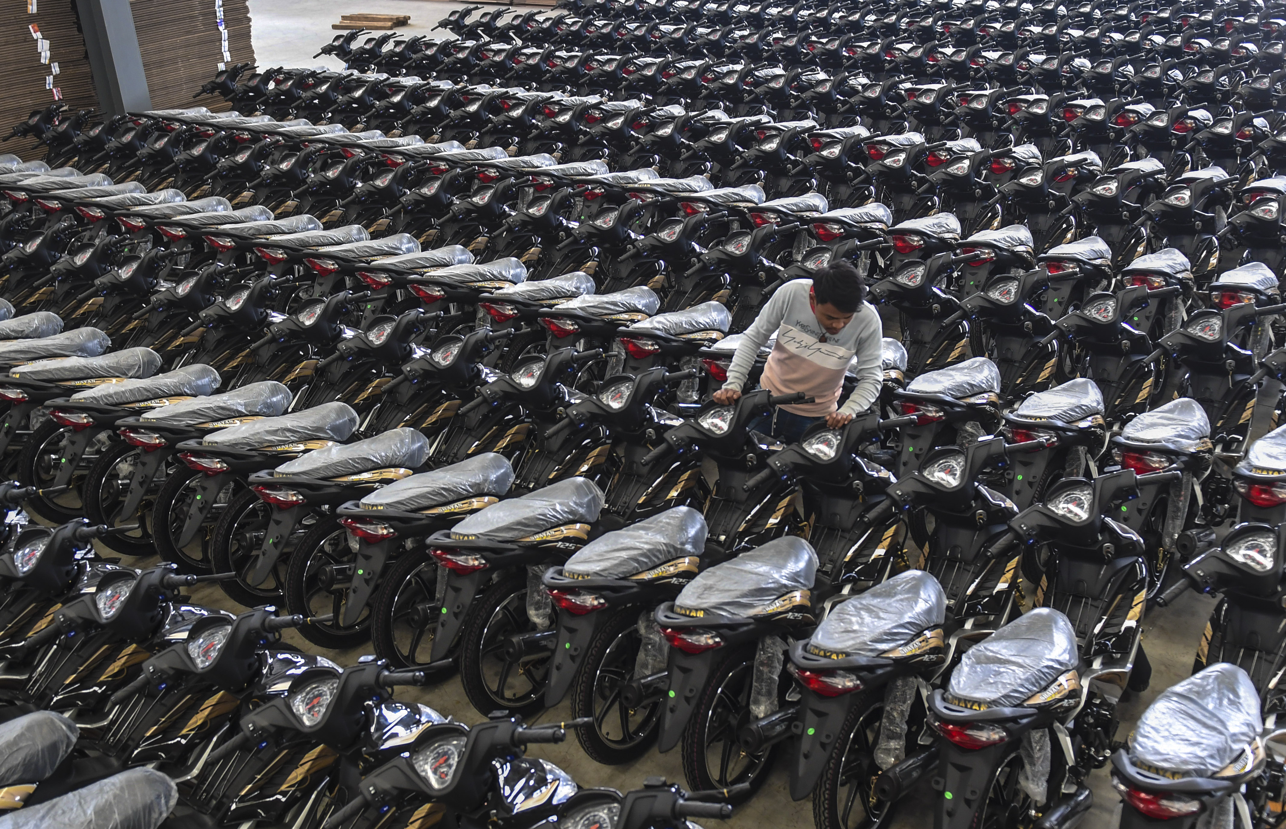 Completed motorcycles are seen at a workshop in Yunnan Yinxiang Motorcycle Manufacturing Co., Ltd in Ruili, southwest China's Yunnan Province, March 8, 2019. (Xinhua/Li Xiaoguo)