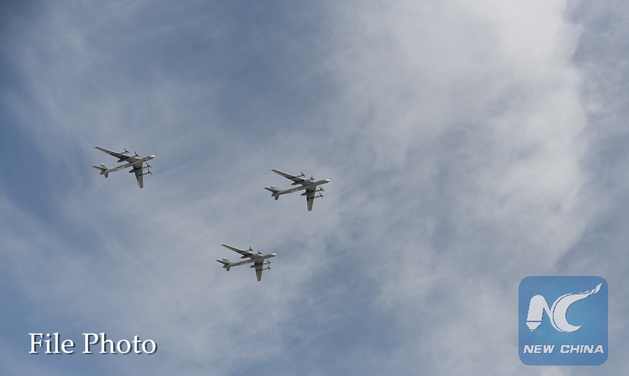 Tupolev Tu-95 strategic bomber fleet fly over the Red Square during the military parade marking the 70th anniversary of the victory in the Great Patriotic War, in Moscow, Russia, May 9, 2015. (Xinhua/Jia Yuchen)
