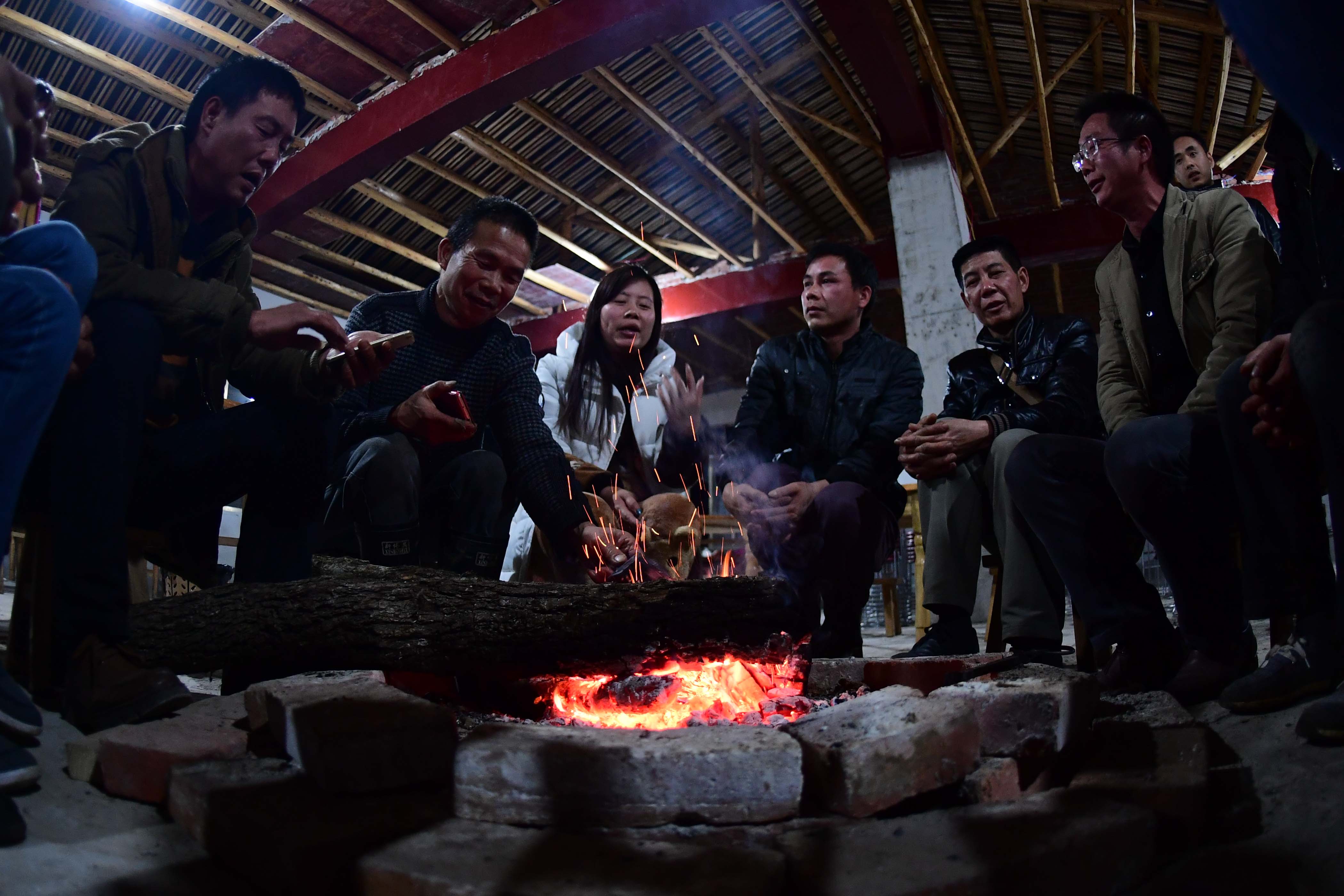 Long Gexiong (2nd R) and villagers take a rest in the mountain at Tongbantun Village of Dongqi Township in Rongan County, south China's Guangxi Zhuang Autonomous Region. (Xinhua/Huang Xiaobang)