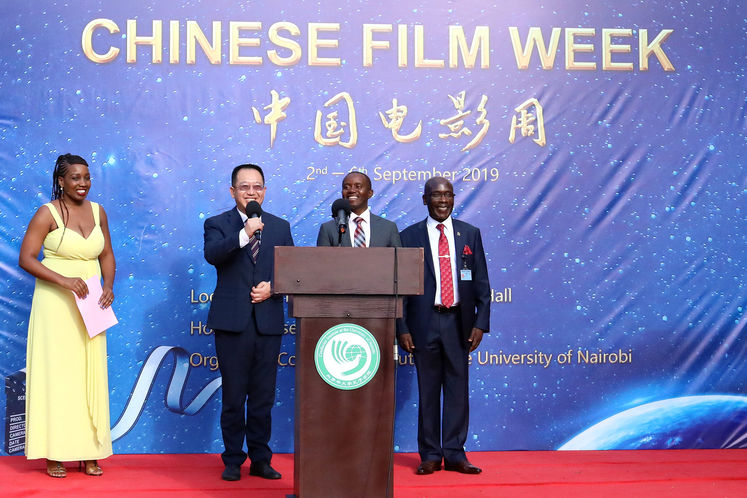 The opening ceremony of the Chinese Film Week is held at the University of Nairobi in Nairobi, Capital of Kenya, on Sept. 2, 2019. Kenya on Monday launched the Chinese Film Week, the first of its kind in the east African country, to boost cultural cooperation between the two countries. (Xinhua/Wang Teng)