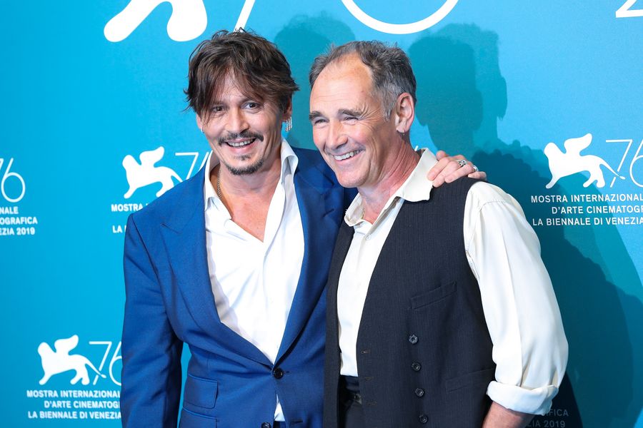 Actors Johnny Depp (L) and Mark Rylance attend a photocall for the film "Waiting for the Barbarians" at the 76th Venice Film Festival. (Xinhua/Zhang Cheng)