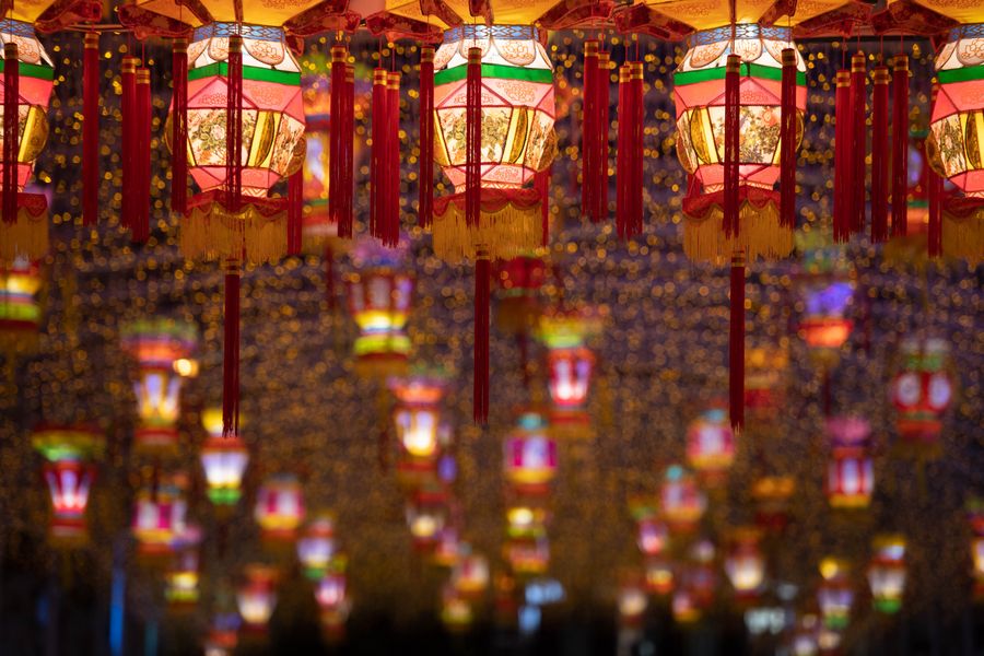 Fancy lanterns are displayed at Senado Square in south China's Macao, Sept. 10, 2019. (Xinhua/Cheong Kam Ka)