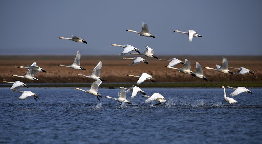 Little swans are seen in the Dongtinghu State-level Nature Reserve in central China's Hunan Province. (Xinhua/Li Ga)