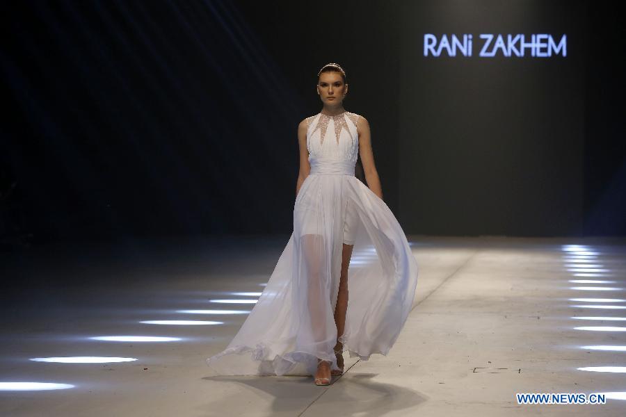 A model presents a creation by Lebanese designer Rani Zakhem during the "Designers & Brands" fashion show in Beirut, Lebanon, on Oct. 8, 2019. (Photo by Bilal Jawich/Xinhua)